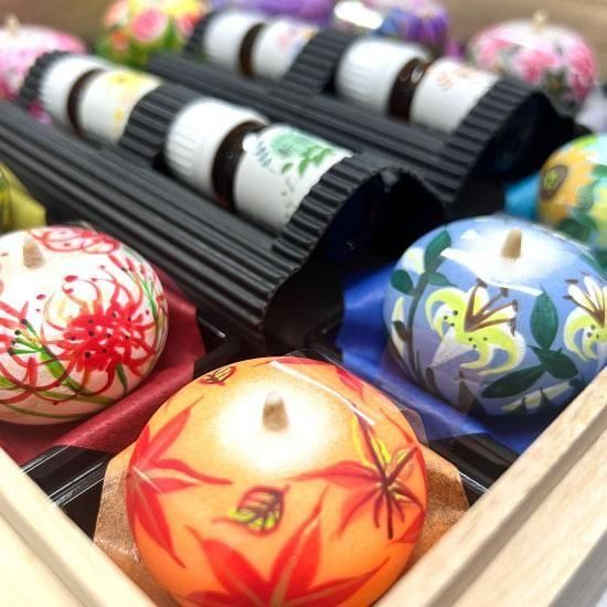花ろうそくの絵師が1年間の季節の花12種類を描きました。